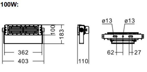 IP Su GeçirmezYWFL100W Havaalanları, büyük binalar, meydanlar ve siyah ve gümüş renkli peyzaj aydınlatması için uygun LED Projektör.