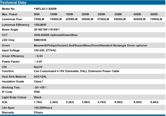 Işık Açısı | 15°/30°/60°/90°/70°x140° isteğe bağlı |